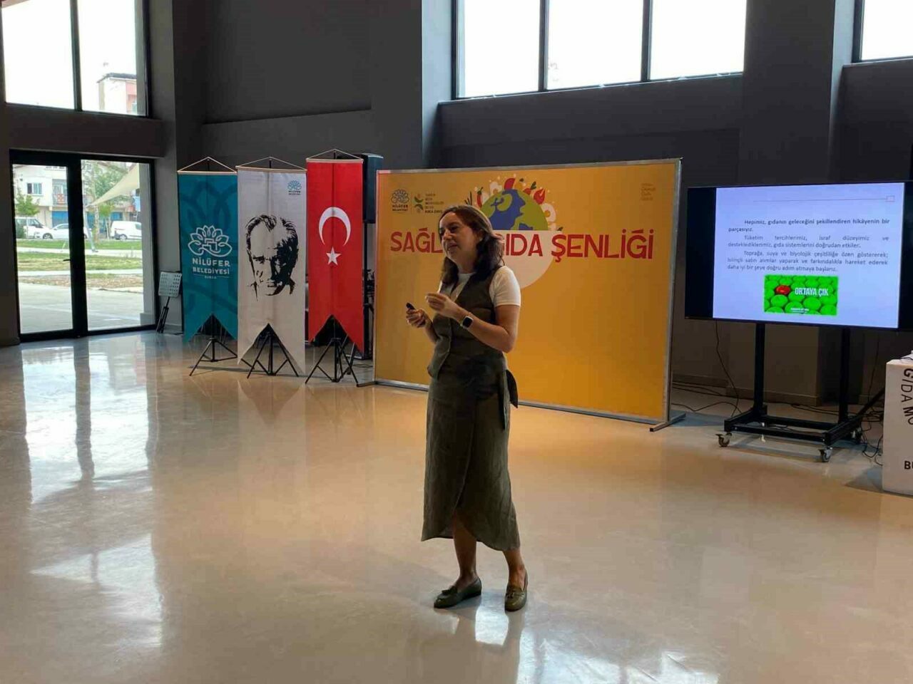 Nilüfer Belediyesi ile TMMOB Gıda Mühendisleri Odası Bursa Şubesi iş birliğinde, güvenli beslenme ve sağlıklı nesiller için farkındalık oluşturmak için gerçekleştirilen ’Sağlıklı Gıda Şenliği’, bir söyleşiyle sona erdi. Nilüfer Pancar Deposu’ndaki etkinlikte Sibel Tokat, “Gıda Etiketi Okuryazarlığı” konulu bir sunum yaptı. Etkinliğe Nilüfer Belediye Başkan Yardımcısı Emre Karagöz de katıldı.