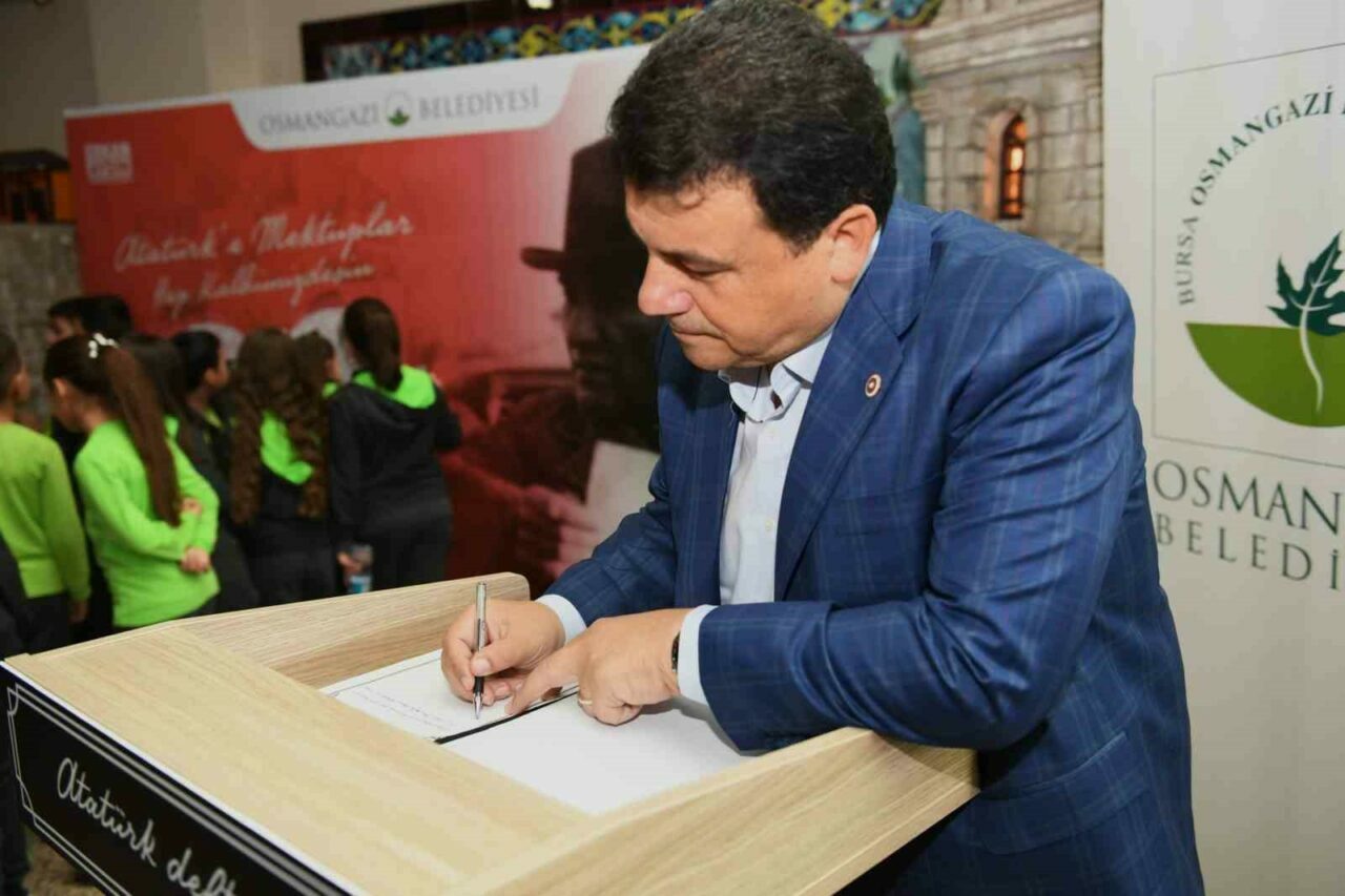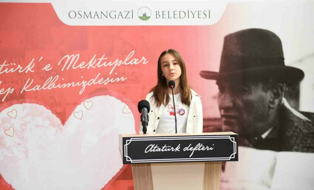 Osmangazi Belediyesi’nin kütüphanelerine gelerek ders çalışan çocuklar kütüphaneye geldiklerinde Atatürk’e olan duygu ve düşüncelerini içeren mektuplar yazarak kütüphanelere teslim etti. Atatürk’e yazılan mektuplar 25 adete ulaşınca Başkan Erkan Aydın, bu mektupların bir kitapta toplanmasını istedi. Oluşturulan Atatürk Defterine çocukların yazdığı mektuplar tek tek aktarıldı. Atatürk Defteri düzenlenen törenle Osmangazi Belediyesi’nin girişine konuldu. Osmangazi Belediyesi’ne gelen tüm misafirler Atatürk’e duygu ve düşüncelerini artık Atatürk Defterine yazabilecek.