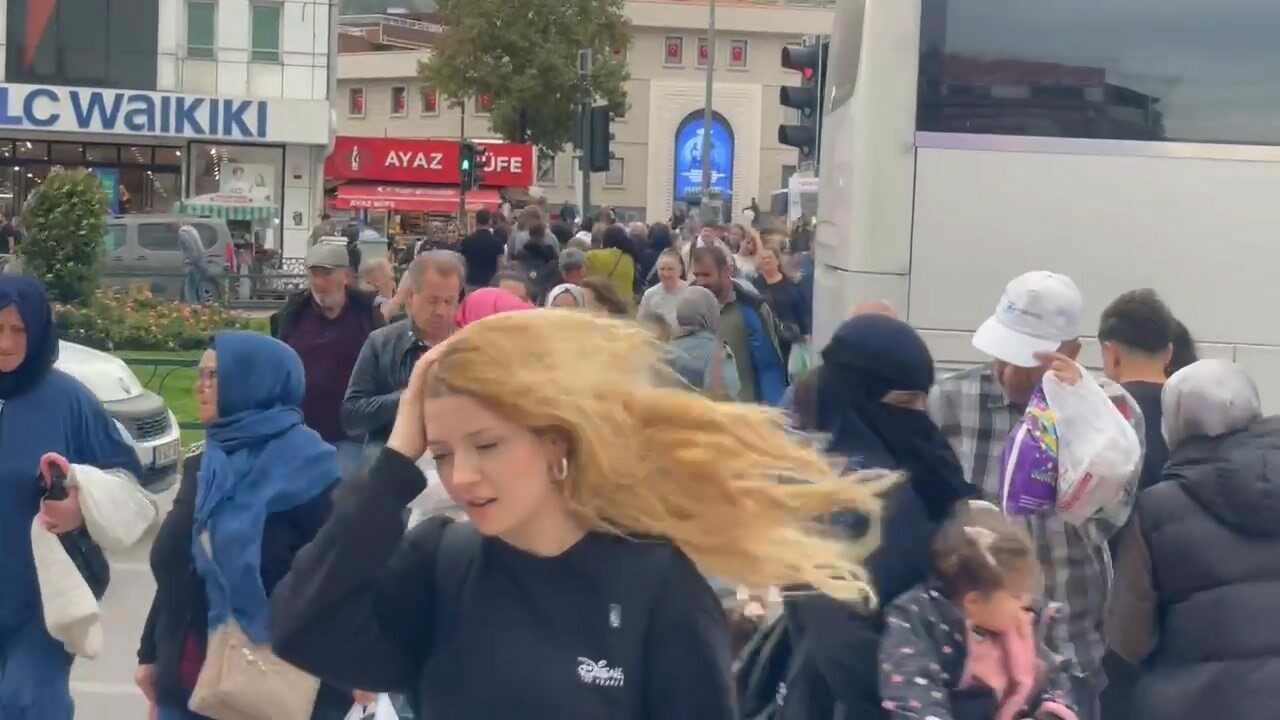 Bursa’da sabah saatlerinden beri etkili olan lodos, giderek şiddetini hissettirmeye başladı. Çarşıda bulunan vatandaşlar, ayakta durmakta zor anlar yaşadı.