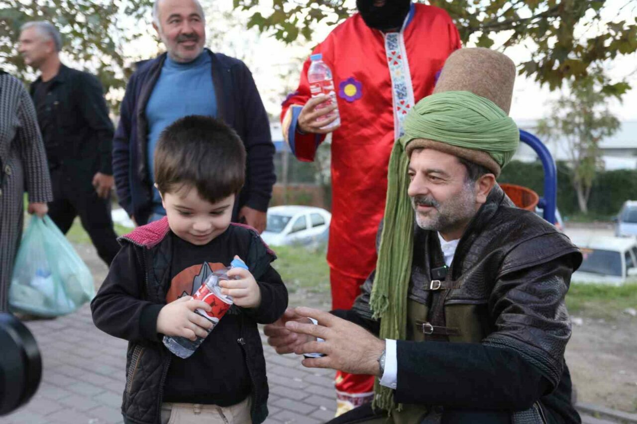 ‘Velhasıl Bursa sudan ibarettir’ diyerek tarihe not düşen Evliya Çelebi kıyafetiyle sahaya inen Başkan Işık, yanına Hacivat ve Karagözü de alarak, “Görüyoruz ki Velhasıl Bursa sudan mahrum. Şovdan ibaretmiş” dedi.