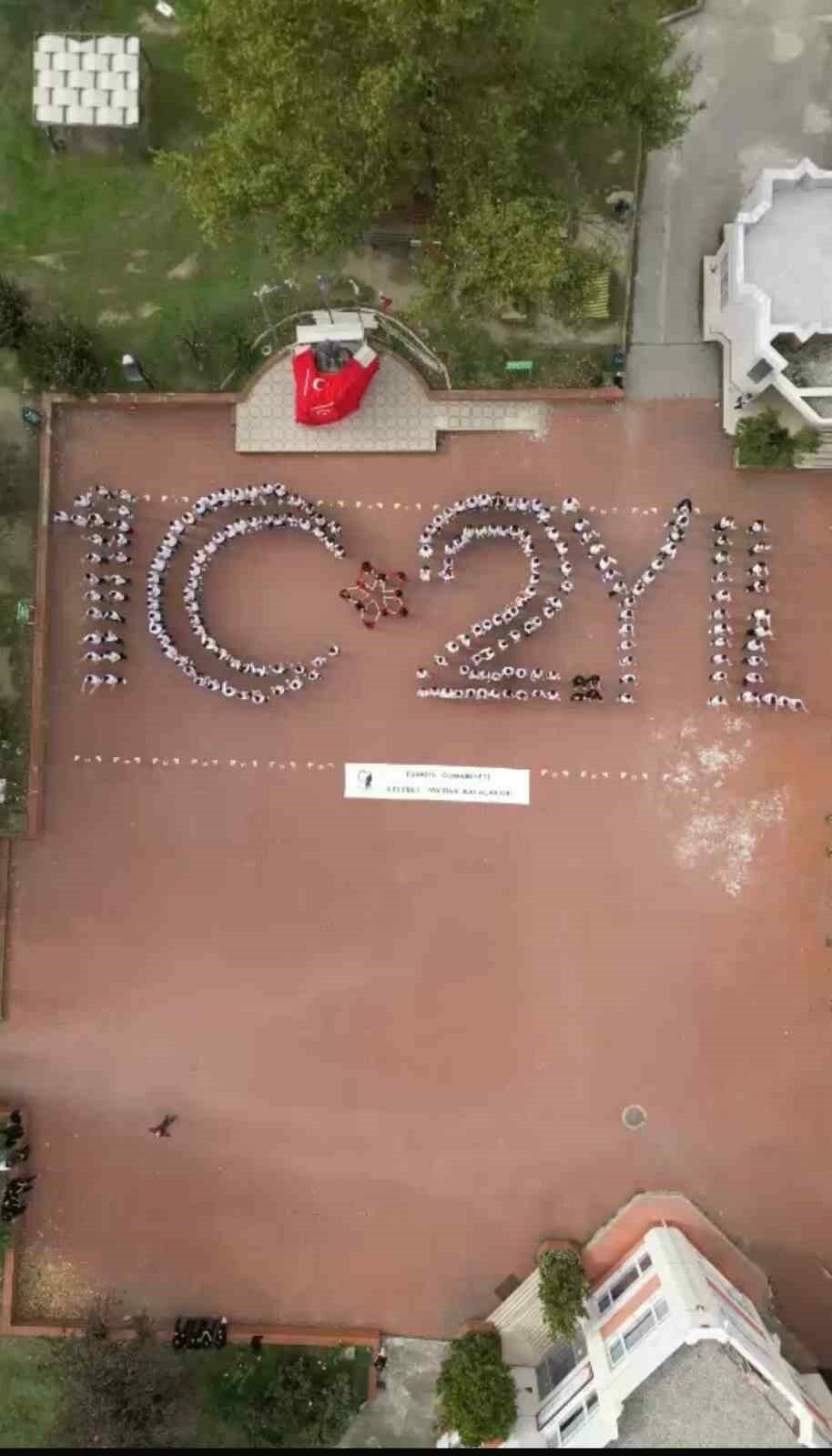 Cumhuriyet Bayramı etkinlikleri kapsamında okul bahçesinde düzenlenen programda kırmızı-beyaz renklerle donatılmış bir koreografi oluşturarak “102. Yıl” yazısı ve Türk bayrağı figürüyle Cumhuriyet’in gururu gökyüzüne taşındı. Ardından öğrenci ve öğretmenler Nilüfer İlçe Emniyet Müdürlüğü ekiplerinin eşliğinde okul çevresinde yürüyüş düzenledi.